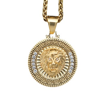 YK New Style PVD Plating Hip Hop Bling Rhinestone Stainless Steel Gold Lion Pendant Freshwater Animal Shape Buddhist Chains