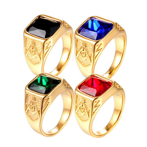 Rvs Religieuze Ring Ingelegd Kleurrijke Agaat Vrijmetselaars Vintage Heren Ring Gouden Heren Ring Sieraden