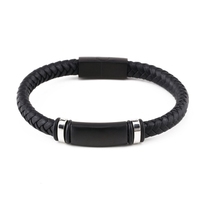 Yk Classic Style Heren Lederen Eenvoudige Zwarte Roestvrijstalen Knoop Neutrale Accessoires Handgeweven Armband Sieraden